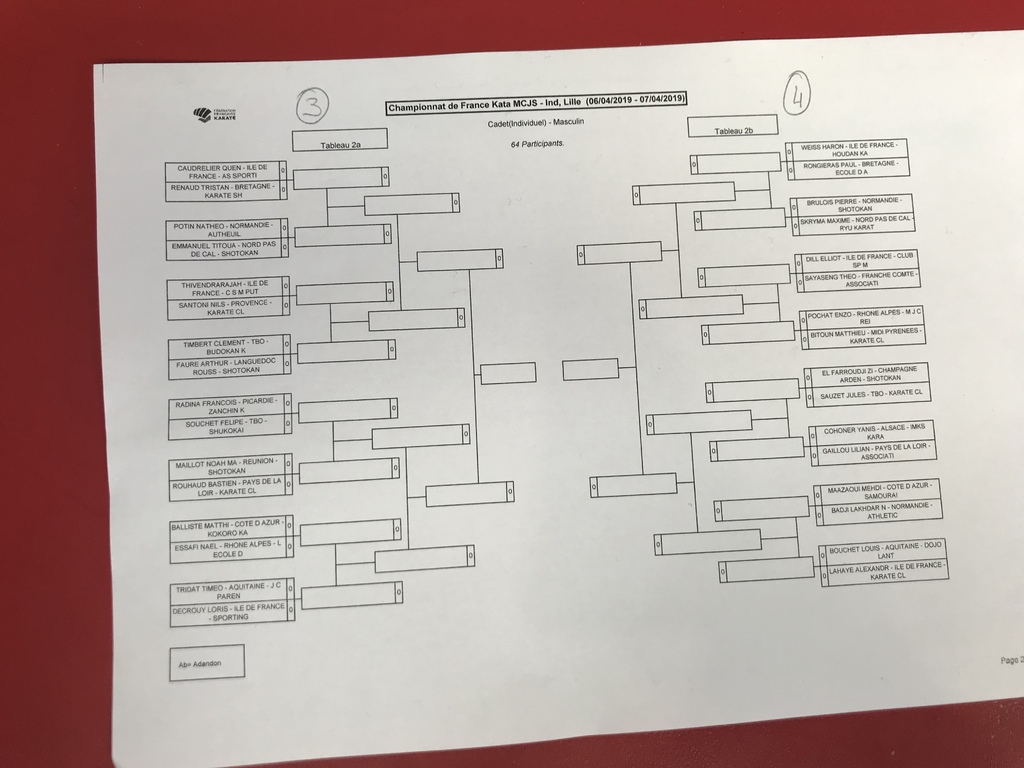 La FFK et la Ligue du du Nord Pas de Calais organise le championnat de France Kata de Minimes à Seniors.
