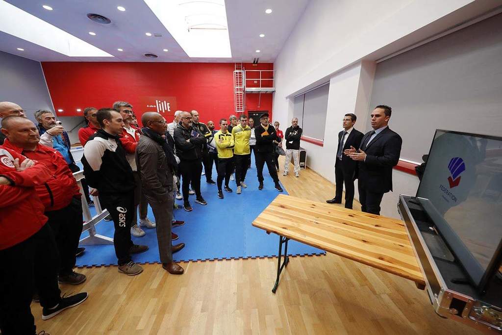 8h30 : Entretien entraîneurs nationaux et coachs compétiteurs. Chambres d’appel compétiteurs, Jules > tapis 4.