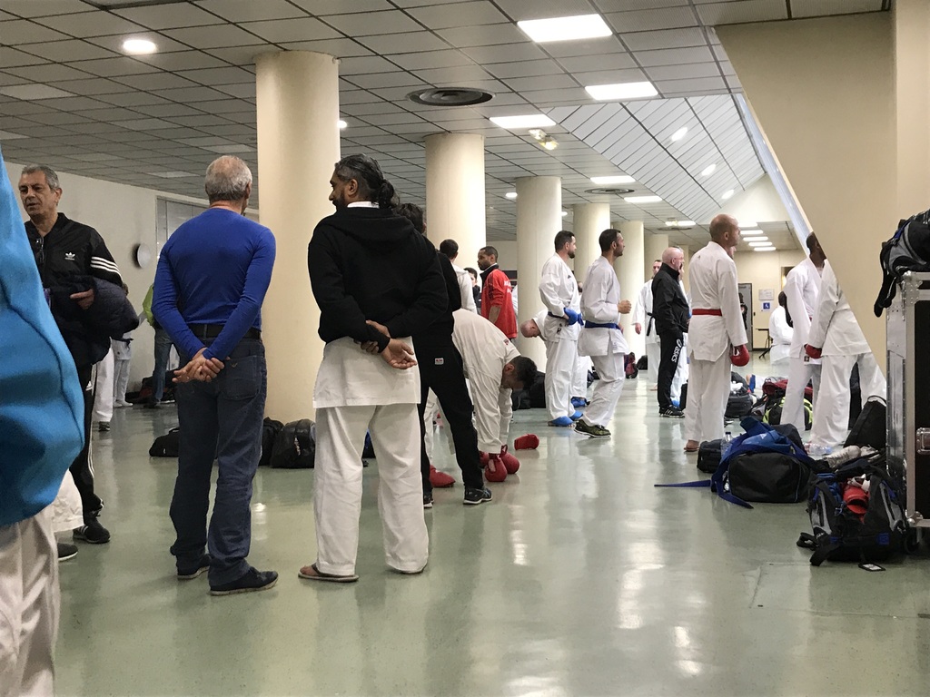 9h/10h : contrôle -84kg vétérans 2 = 22 compétiteurs. 12h00 affichage tableaux,David sera en bleu (ao). En attente d’appel.....