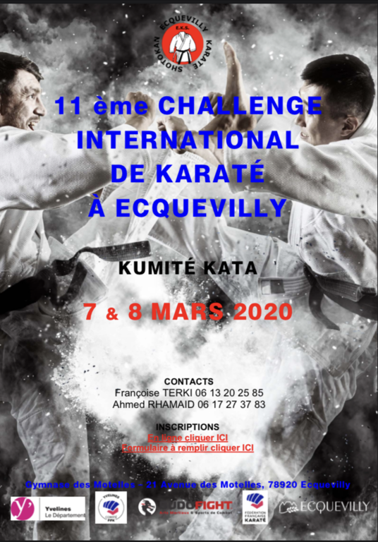 Le 11ème Challenge International d'Ecquevilly se déroulera du 07 au 08 mars 2020.