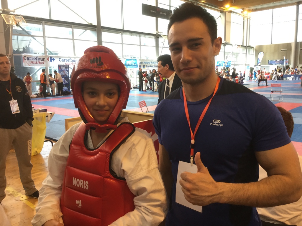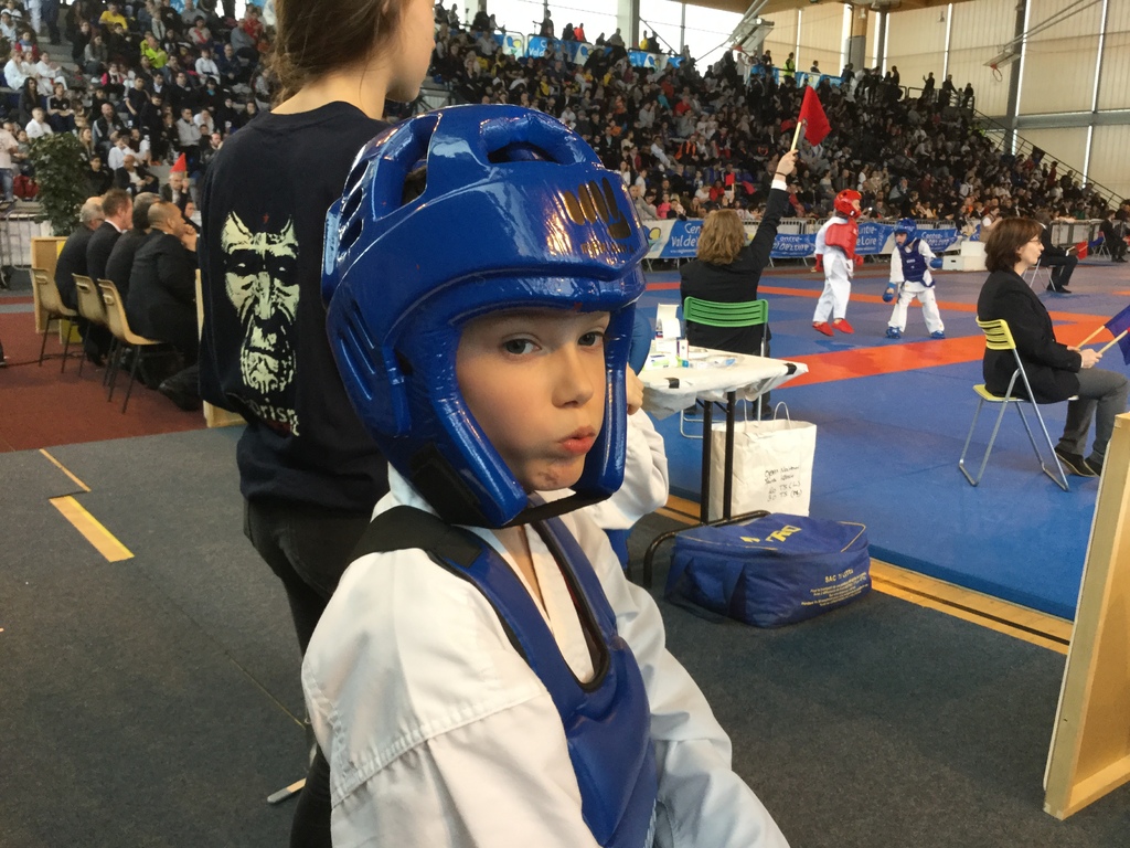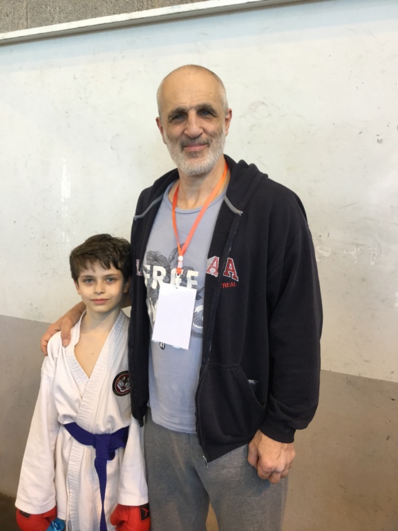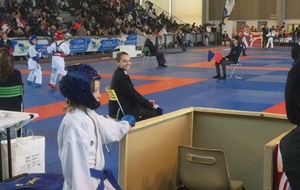 Son adversaire assuré, parvient et gagne ses tours un à un. Peut-être repêchage, et c'est fait. Nolann se remotive. 5 competiteurs repêchés dont Nolann. Retour 1er repêchage, Nono déterminé, clos le combat en 1mn : 8/0. Arrive le second tour, match serré, 1/0, puis 3/0 pour Nono. Mais son adversaire déterminé colle au score par Jodan geri, 3/3. Nono accroche 5/3 par mawashi chudan. Adversaire coriace qui est bien présent 5/5. Hélas à 10s second chudan geri 5/7, mais Nono ne lâche pas et marque tsuki jodan 6/7. Top fin de combat, finalité 6/7. Dommage, entraînements constants à reprendre.... Nono.