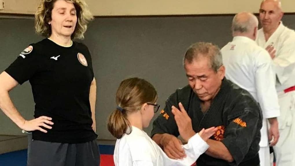 Il avance certes avec une canne, mais l’œil est vif, l’esprit agile et la technique sans faille. Lui, c’est Zenei Oshiro, 9e dan de karaté.