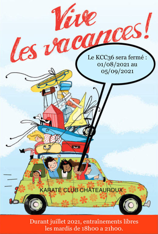 Votre club « KARATÉ CLUB CHÂTEAUROUX » fermera du 01/08/2021 au 05/09/2021.